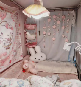 除了传统国风元素的雅致呈现,此次设计大赛中还有部分寝室以甜美、卡通、自然等风格打造出鲜活的生活空间。