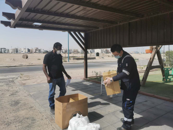 戴郑翌得知科威特地区首例确诊情况之后,做的第一件事就是召集外籍劳工进行安全教育,讲解关于防疫的问题和措施,并且分发防疫用品,以此保证劳工们的安全。在党支部书记的指示下,他迅速将外籍人员安置在项目驻地进行统一管理。