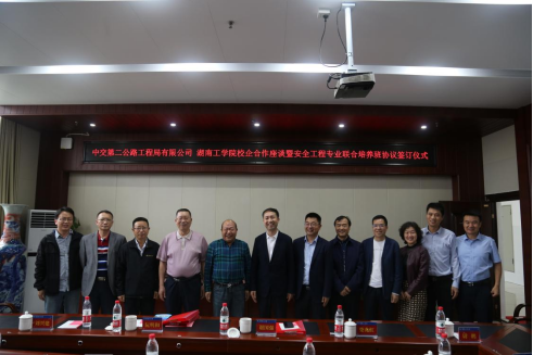 刘升学代表学校对二公局开展安全工程专业联合培养表示热烈欢迎,并表示二公局作为国家基础设施建设单位的排头兵,建设了一系列重点工程,获得了一系列成绩荣誉,也培养了一大批优秀人才,希望未来校企双方能够紧密联系,进一步深化合作,实现优势互补、多结硕果。
