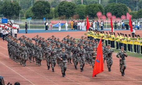 开幕式上,护校队方阵步伐整齐、身姿挺拔,以嘹亮的口号与昂扬的姿态,展现出队伍严谨务实、奋发向上的精神风貌。