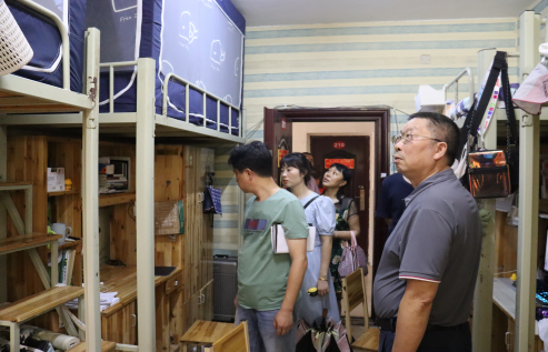 在学生公寓宿舍,刘龙昌副校长仔细查看,对学生使用大功率电器、私接乱拉电线、宿舍卫生脏乱差等问题提出整改意见,要求学管部门、二级学院加强巡查力度,落实整治措施,确保宿舍安全,同时要求后勤管理处提高检测、维修效率,避免因开关、线路老化问题引发宿舍火灾。