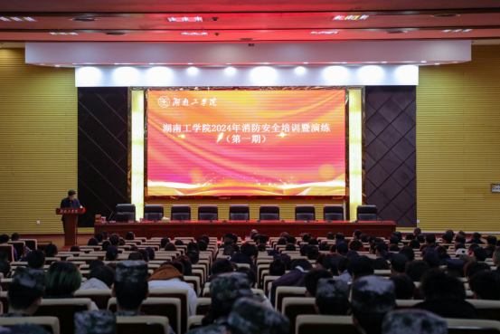 在明翰报告厅,唐韬从火灾案例警示、学校突出风险点分析、消防安全管理责任、管理目标及方法、应急处置及逃生知识五个方面,进行讲解、播放警示教育片、实操演示。讲座结束后,在肖伟的指导下,全体参训人员在报告厅现场进行疏散逃生演练,工作人员在场地附近投放烟雾弹,现场警报铃声响起,参训人员按照队列依次有序完成疏散。