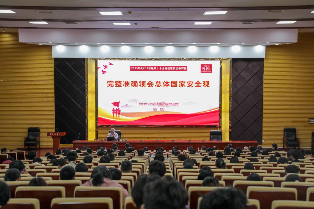 讲座特邀南京大学专职军事教师杨新教授主讲。讲座中,杨教授从总体国家安全观的创立背景出发,系统阐述了其科学内涵与主要内容,深入剖析了其基本特征与重大现实意义。杨教授指出,完整准确把握总体国家安全观,对于推进国家治理体系和治理能力现代化、应对复杂多变的国际国内安全形势具有重要战略意义。