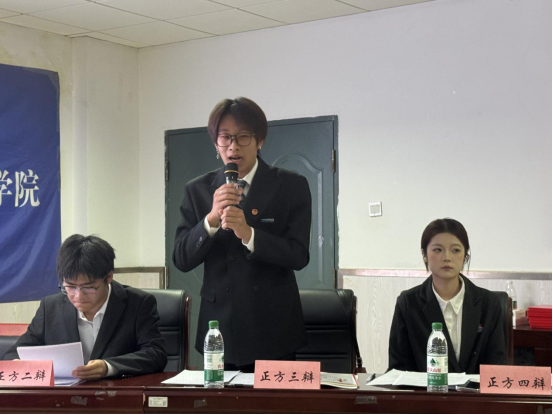 辩论结束后,评委对选手表现进行专业点评与打分。最终,正方队伍凭借出色发挥夺得冠军,反方四辩选手材料2403班贺子谦荣获“最佳辩手”称号。李前奔在总结发言中肯定了同学们的精彩表现,鼓励大家在思辨中成长,以更积极的态度面对学习与生活。