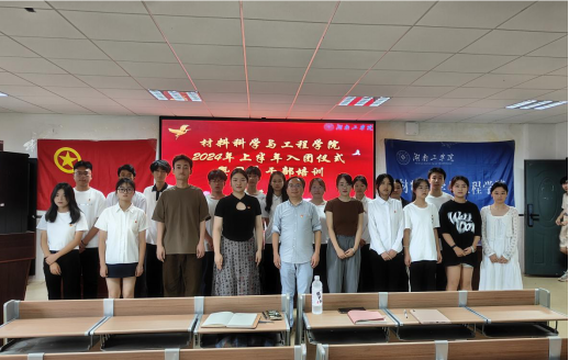6月18日,材料科学工程学院在材化楼1301报告厅开展2024年上半年入团仪式暨团学干部大会。党委副书记李前奔、辅导员王安东、谌雯洁出席,全体团学干部、上半年新发展团员参加,分团委副书记罗心阳主持会议。