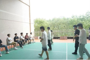 “室外素质团体拓展”—心理健康团体辅导。5月8日,在材化楼3楼平台,心理专家谢玲组织开展了一场大学生团体辅导活动。“你喂我吃,团结友爱”环节,活动要求遮住眼睛给队友递吃香蕉,看哪些队友默契度最高,能顺利吃到美味的香蕉。在“同舟共济,扬帆起航”环节,活动把一张布当成大海的一条船,每组团体成员必须同时站在船上,一个也不能少,并持续将布面积减半。两个活动充分地培养了学生心、脑、手的默契,学生在相互协作中感悟团队的力量,活动现场,气氛热烈,弥漫着欢乐的氛围。