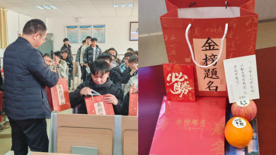 老师们将寓意“心想事成”的橙子、“平安上岸”的苹果以及“妙笔生花”的笔记本礼盒送到100多名考研学生手中,用这份心意传递温暖与祝福。每一份礼物都承载着老师们对学生最真挚的关怀与支持,希望这些小小的心意能够成为学生们备考路上的一剂强心针,帮助他们克服困难,勇往直前。