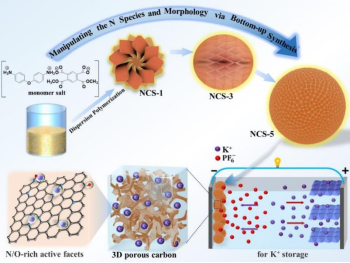 通过调节大分子自组装过程的结晶环境,使聚合物自组装成形貌可控的多级结构碳材料前驱体,实现了聚酰亚胺基碳材料的氮含量和氮构型的调控,构建高吡啶氮、吡咯氮含量的三维互连的多级结构,有效增强了碳材料的钾离子存储能力。
