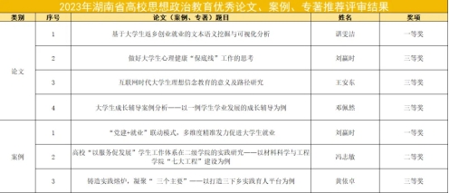 2023年湖南省高校思想政治教育优秀论文、案例、专著推荐评审结果