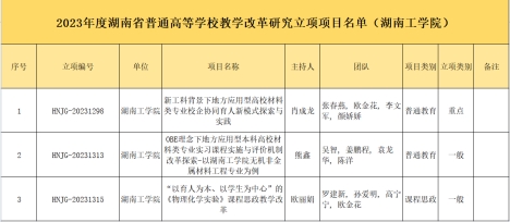湖南工学院2023年度立项建设教学团队