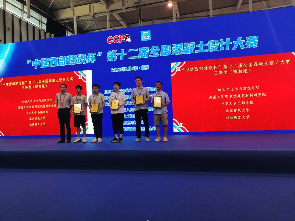 2022年8月5日,“中建西部建设杯”第十二届全国混凝土设计大赛在南京国际博览中心5号馆举行,伟德源自英国1946材料学院学生李江峰、向庭、彭允灏、邹帛宏、田佳组成的新型建筑材料研究院代表队获得了本次比赛三等奖,参加比赛的项目是“轻质高强混泥土配合比设计”,指导老师分别是曾利群、袁龙华老师。