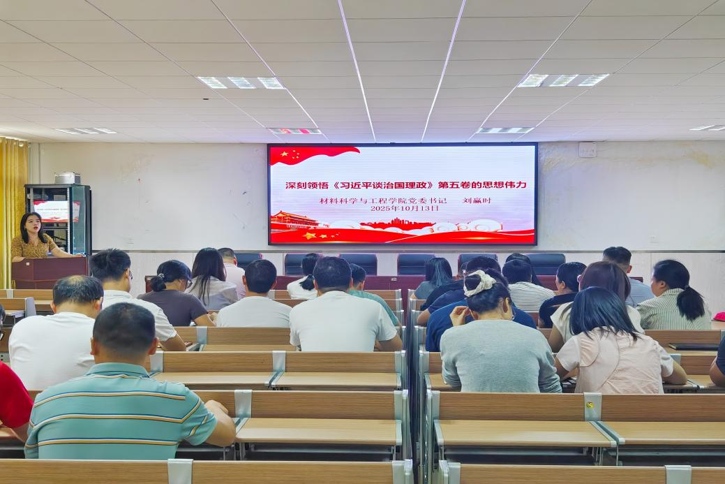 材料科学与工程学院精心构建“党委引领、支部联动、骨干带动”的多维学习矩阵,通过一系列层次分明、形式多样的活动,在全院上下掀起了学习《习近平谈治国理政》第五卷的热潮,着力引导师生党员、团学骨干在深学细悟中筑牢思想根基,在实干笃行中彰显担当作为。