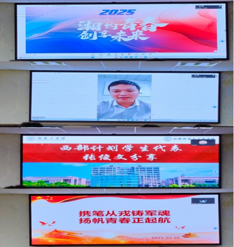 “到西部去,到基层去,到祖国最需要的地方去!”西部计划志愿者学生代表张俊文同学通过视频连线,深情讲述自己选择奔赴西部的初衷,介绍了自己服务基层的坚强意念,他号召毕业生到祖国需要的地方去建功立业,他的分享让很多同学湿了眼眶。