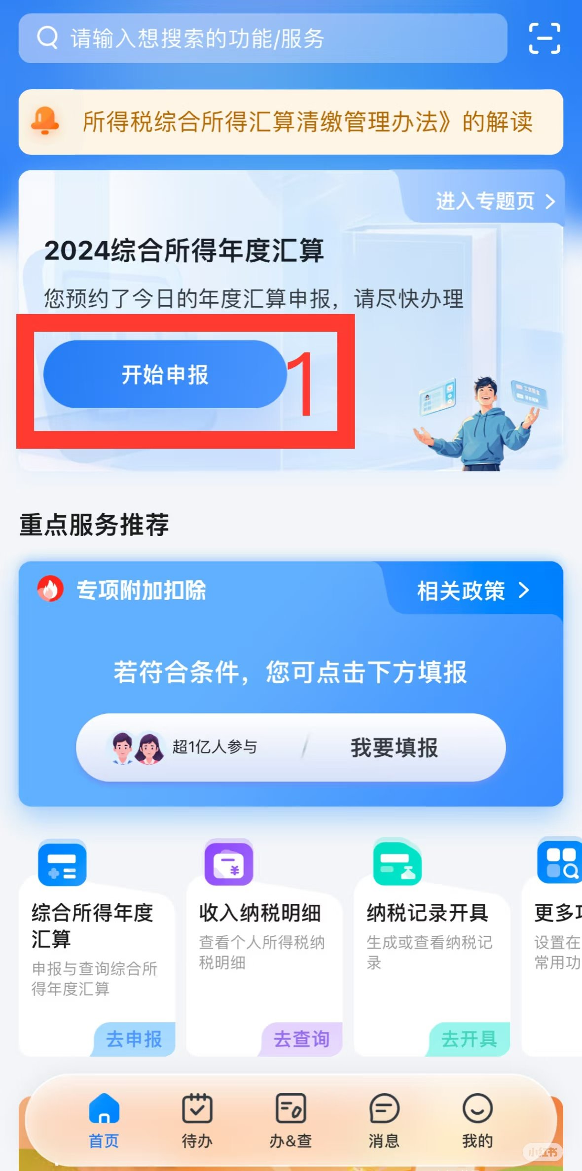 (1)登录个税APP后,点击进入【20XX综合所得年度汇算】。