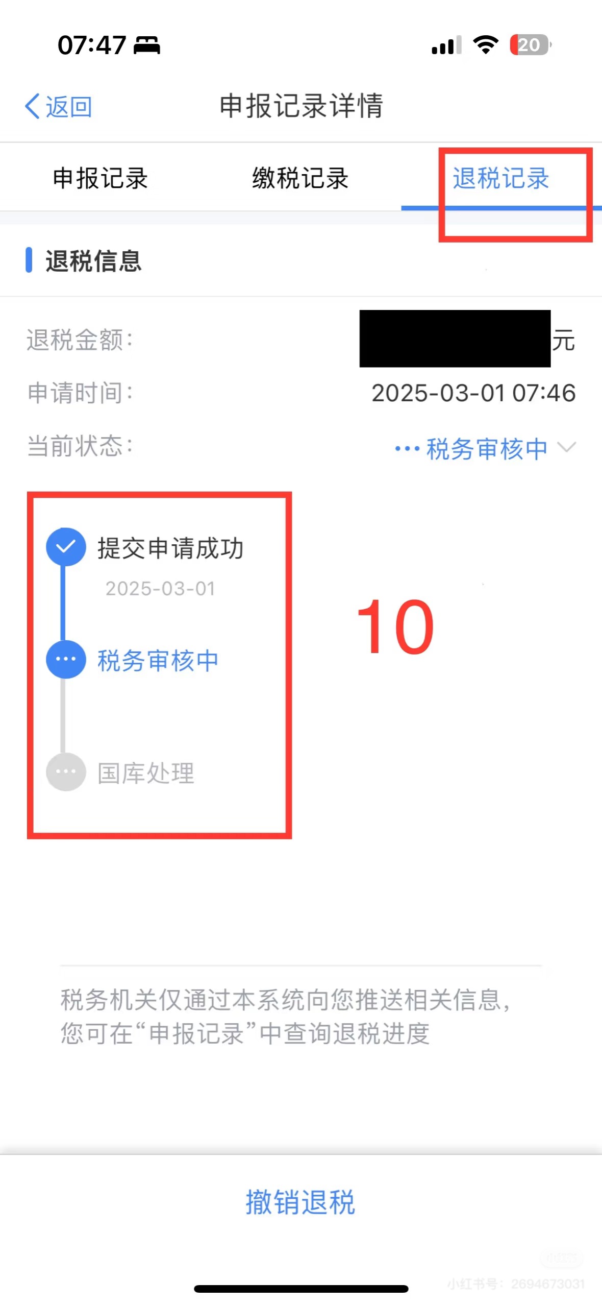 (6)核对应退(补)税额,提交申报。