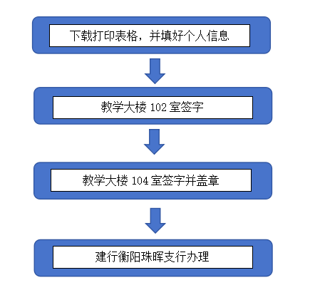 在衡阳市已缴纳3个月及以上住房公积金的教职员工按照以下流程办理公务卡: