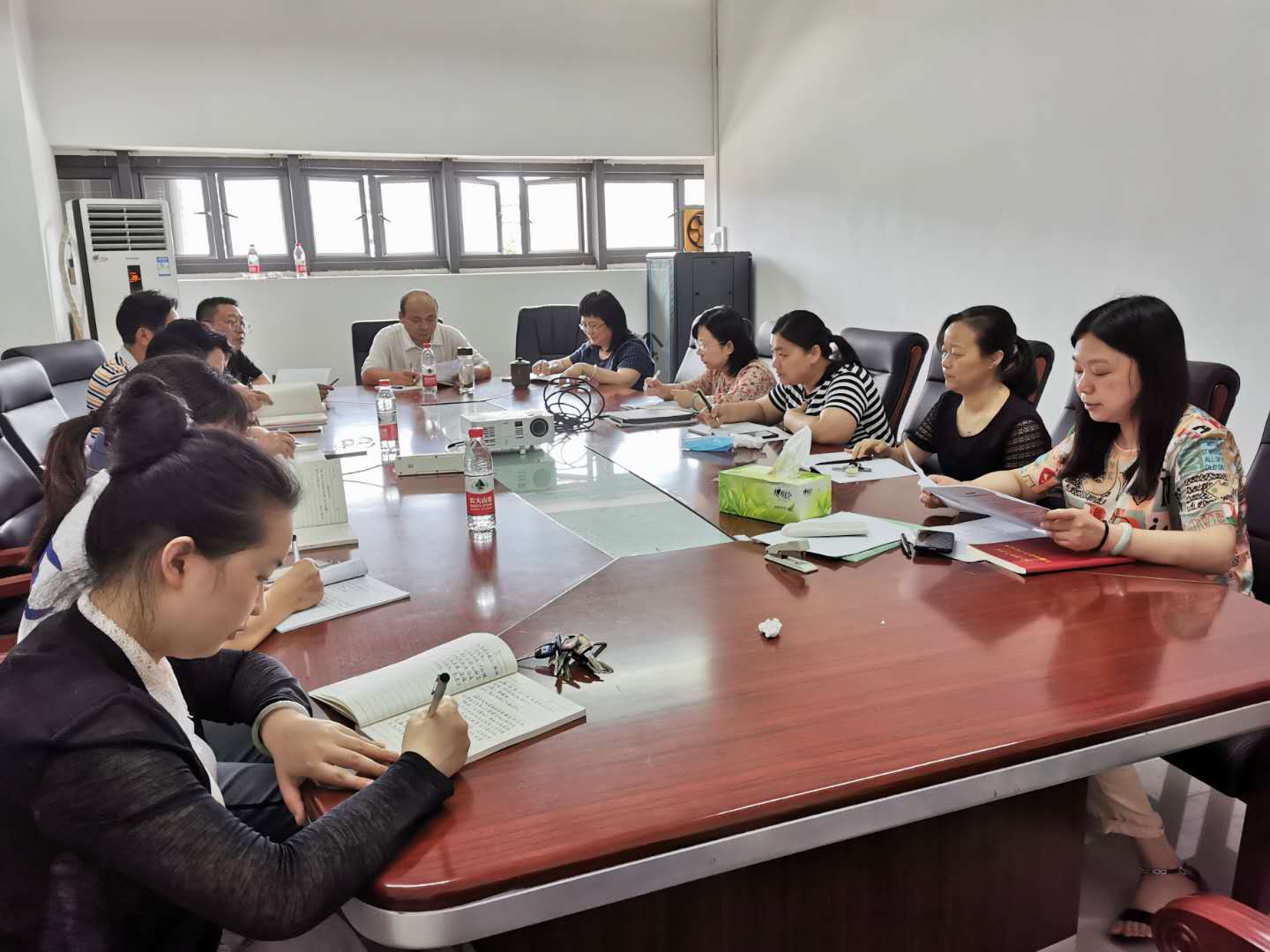 6月2日下午,财务处党支部开展6月主题党日活动,专题学习研讨2020年《政府工作报告》和《中华人民共和国民法典》。支部书记施毅敏主持会议,全体党员参加了会议。
