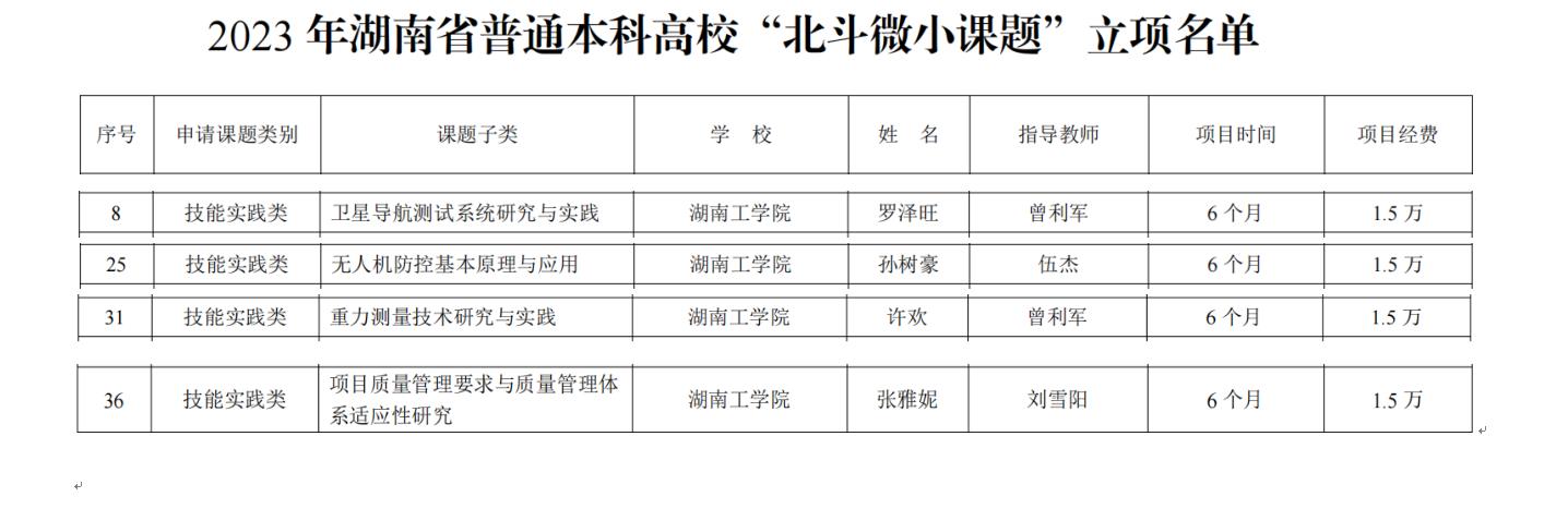 近日,湖南省教育厅发布了《关于公布2023年湖南省普通本科高校“北斗微小课题”立项结果的通知》。2023年湖南省普通本科高校“北斗微小课题”分为技能实践类、应用研究类两个类别,在籍全日制本科2020级学生均可申请,伟德共申请了6项,立项4项。