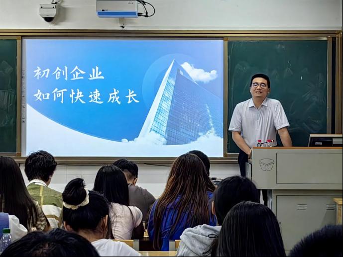 在讲座中,刘奕辰首先以自己的创业实践为例,介绍了企业的发展阶段,并从商业规划、市场调研、团队建设、营销策略、质量管理、风险控制等方面阐述实现初创企业快速成长的必要路径。最后,刘奕辰还与现场观众进行了积极互动,现场气氛轻松活跃。