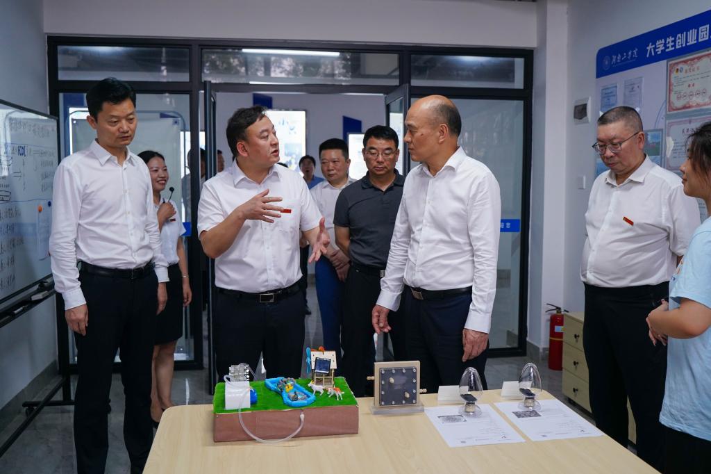 市领导于新凡、胡果雄、校党政办、宣传部、创新创业教育中心等部门主要领导陪同调研。(图/杨济源 文/陈晓波 审稿人/一审:伍玲 二审:李来丙 三审:张文玉)