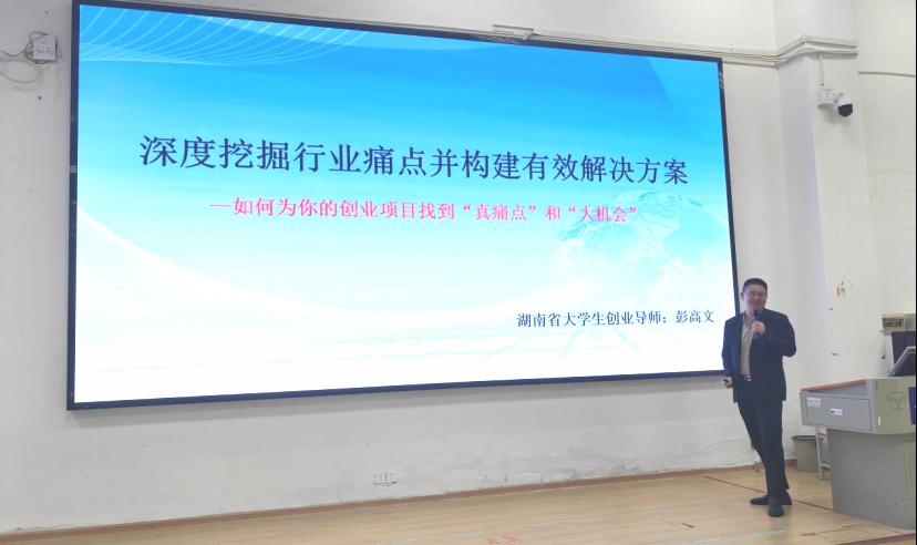 随后,彭高文结合自身创业经历,围绕“如何为创业项目找‘真痛点’和‘大机会’”展开分享。他指出,优秀的创业项目应具备三大核心要素:一是解决真实、迫切且有价值的问题,精准把握市场需求;二是具备切实可行且具有竞争力的解决方案,在技术、成本或服务等方面形成独特优势;三是市场容量足够大,并拥有可持续的盈利模式。彭高文还通过饮水机、钓鱼渔具、虚拟驾驶培训舱等项目实例,生动剖析了创业中常见的“伪需求”“焦点分散”“资源依赖”等误区,帮助同学们更直观地理解如何识别和挖掘优质项目痛点。