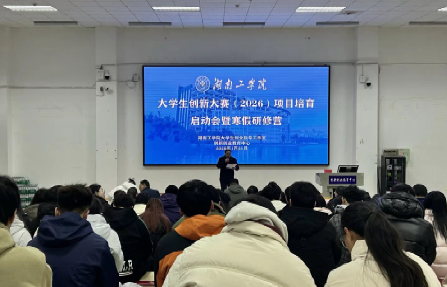 启动会上,学校党委副书记何建雄发表讲话。他勉励师生紧扣学校应用型办学定位,将项目设计与国家战略、产业需求深度融合,发扬“敢闯会创”的精神,追求实效与创新,力争在2026年大赛中展现湖工风采、再创佳绩。
