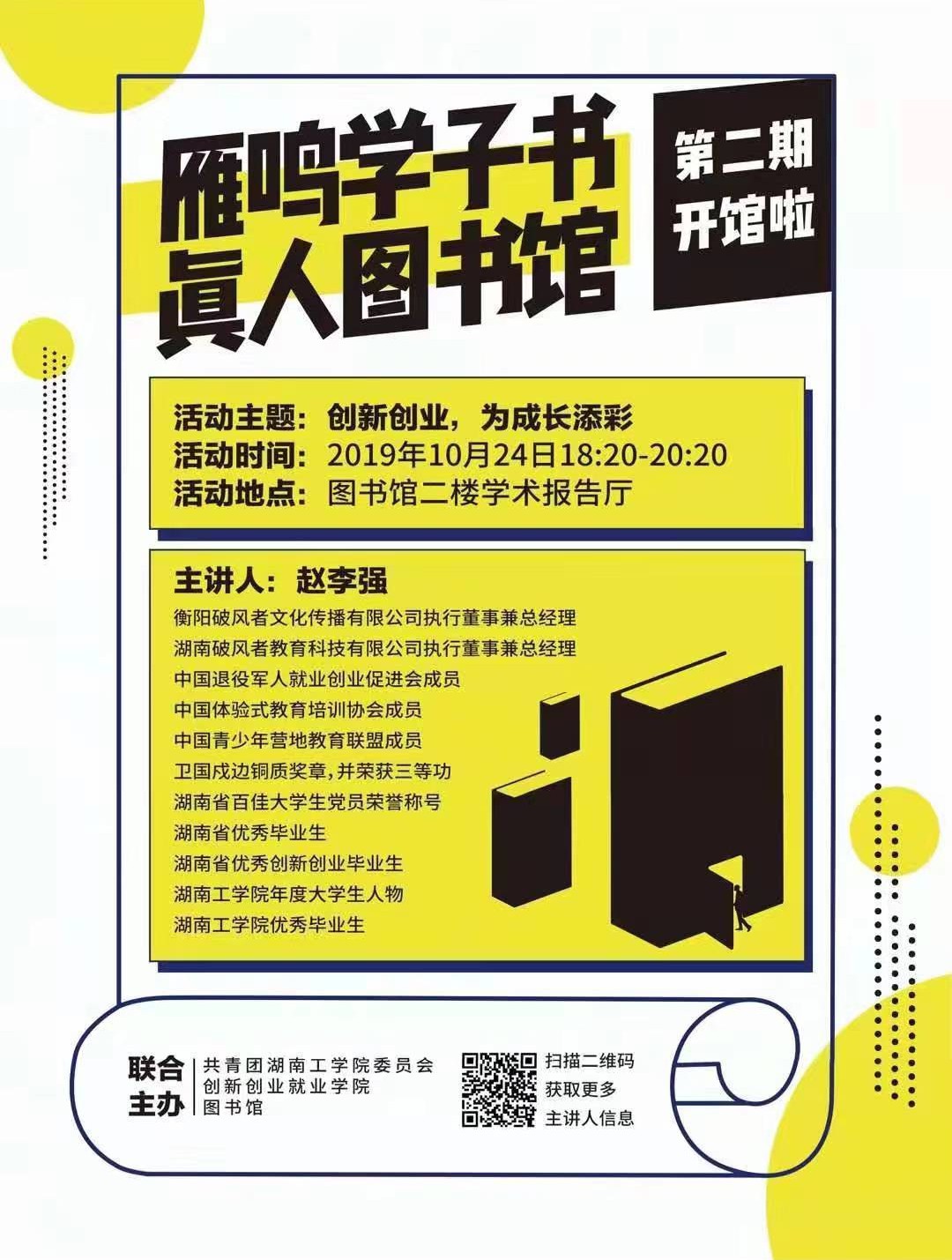 如果你想了解大学生创新创业,渴望交流与分享,那就来图书馆读有思想的“图书”,与心中仰慕的师长平等对话,分享自己的人生经历与感悟,探讨彼此感兴趣的人、事、物,用人生激励人生,用智慧点燃智慧。