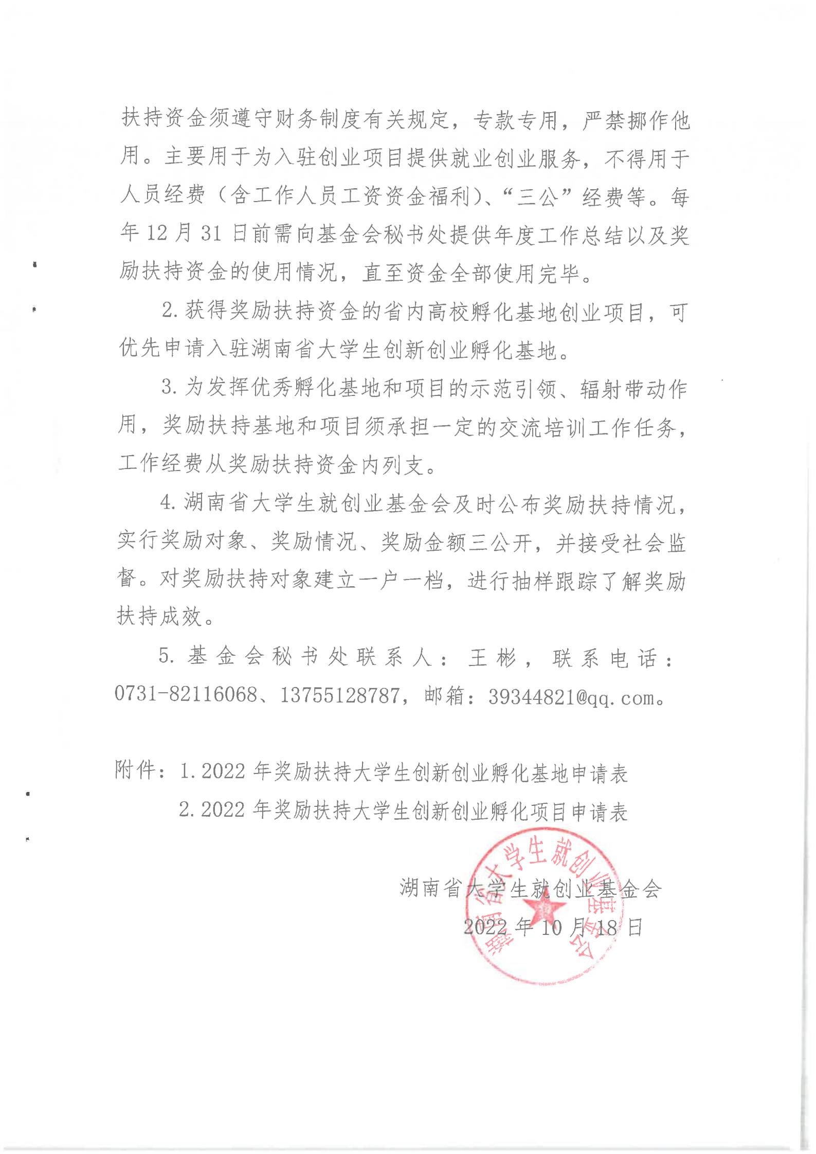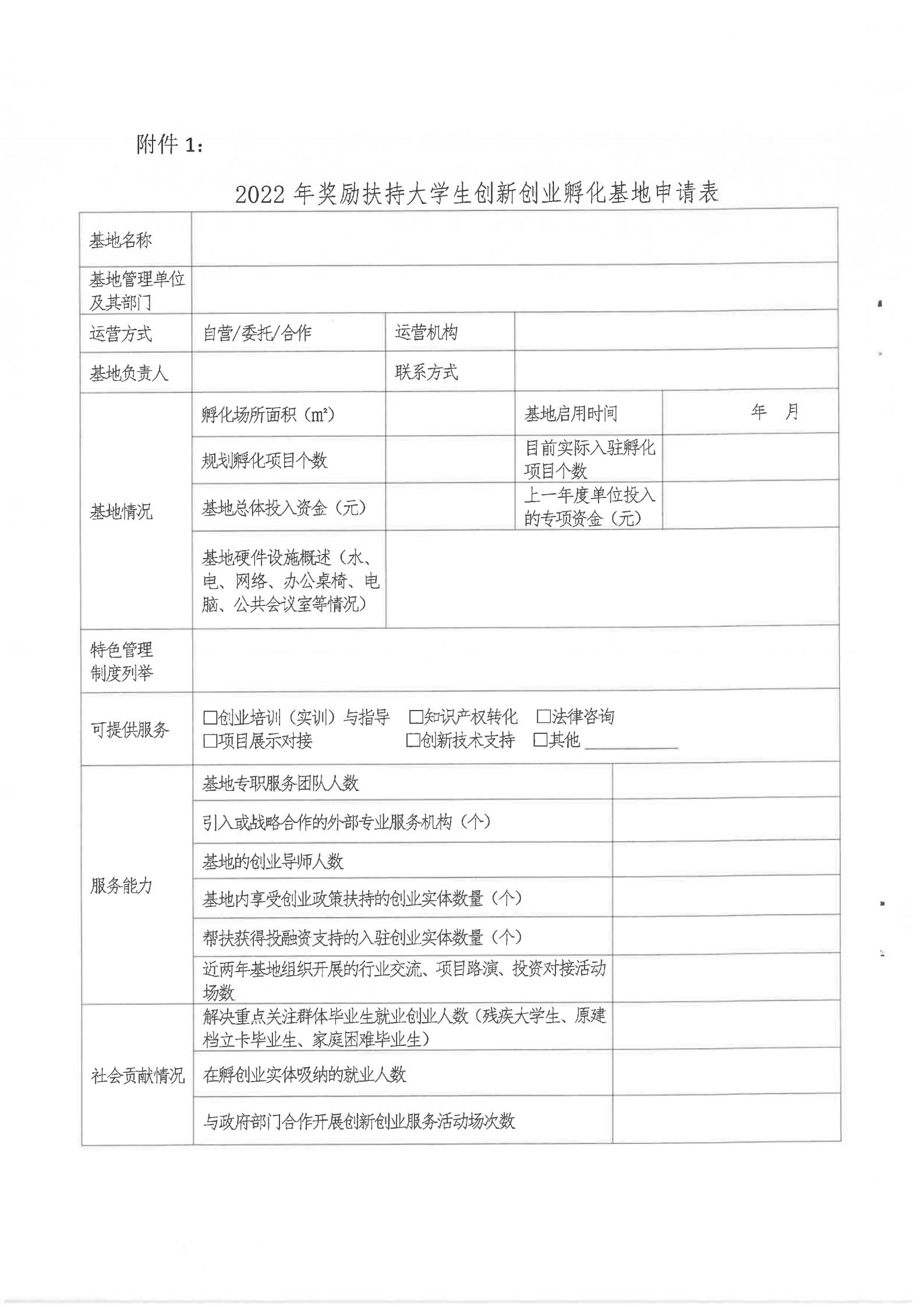 转发:《2022年奖励扶持一批大学生创新创业孵化基地及项目公告》