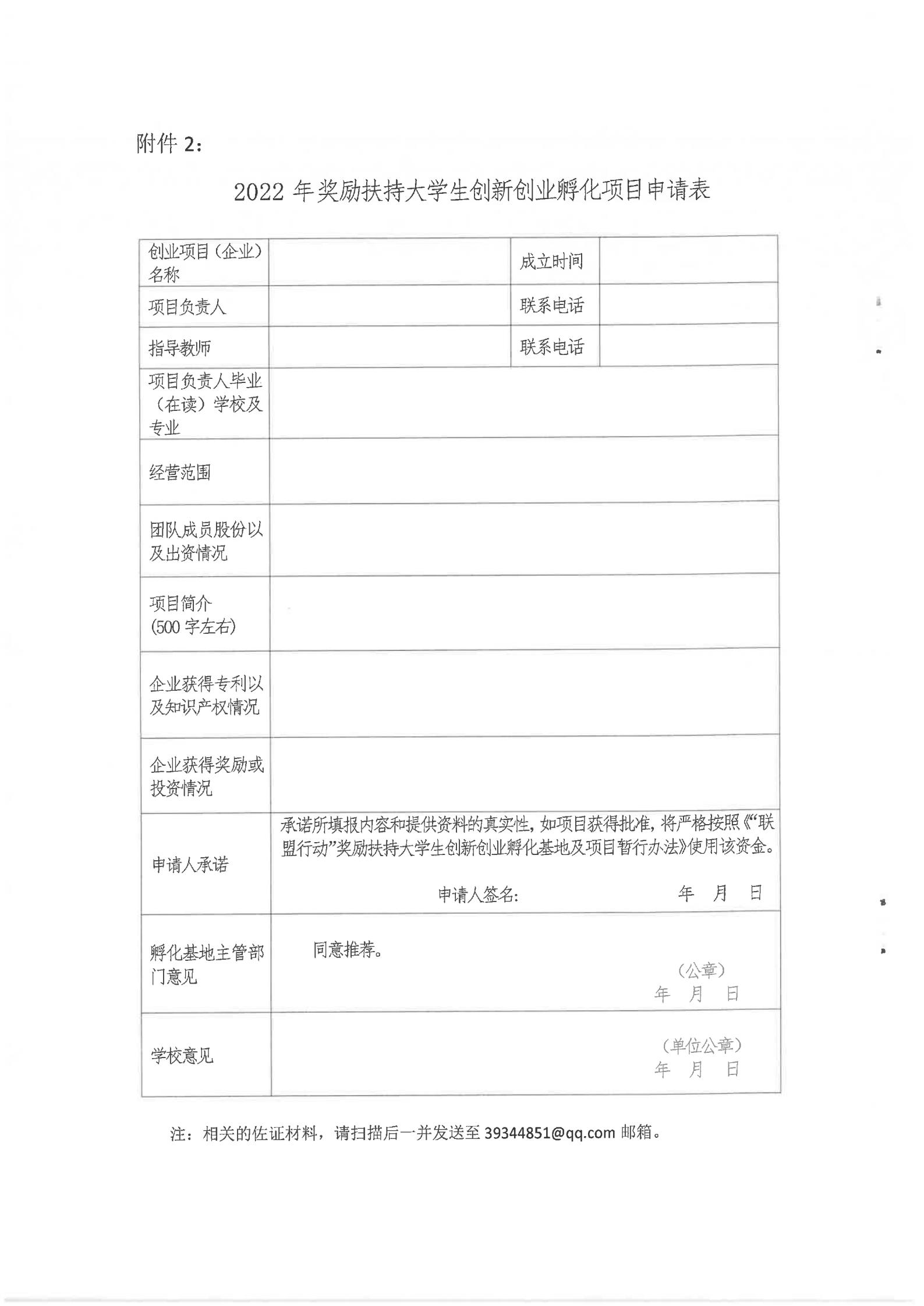 2022年奖励扶持一批大学生创新创业孵化基地及项目公告.doc