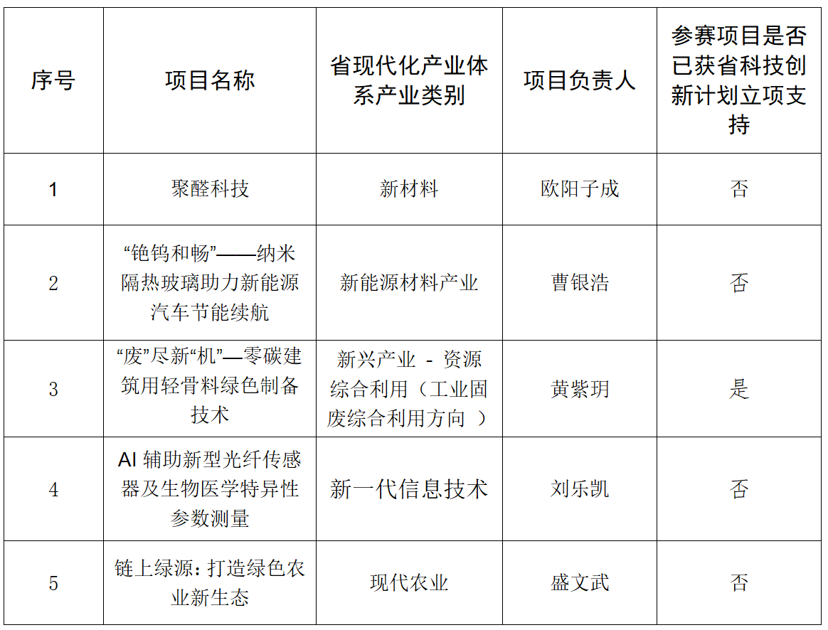 选取二级学院推荐项目中通过资格筛查及初审的5个项目进入校选拔赛决赛路演,具体项目名单见附表。