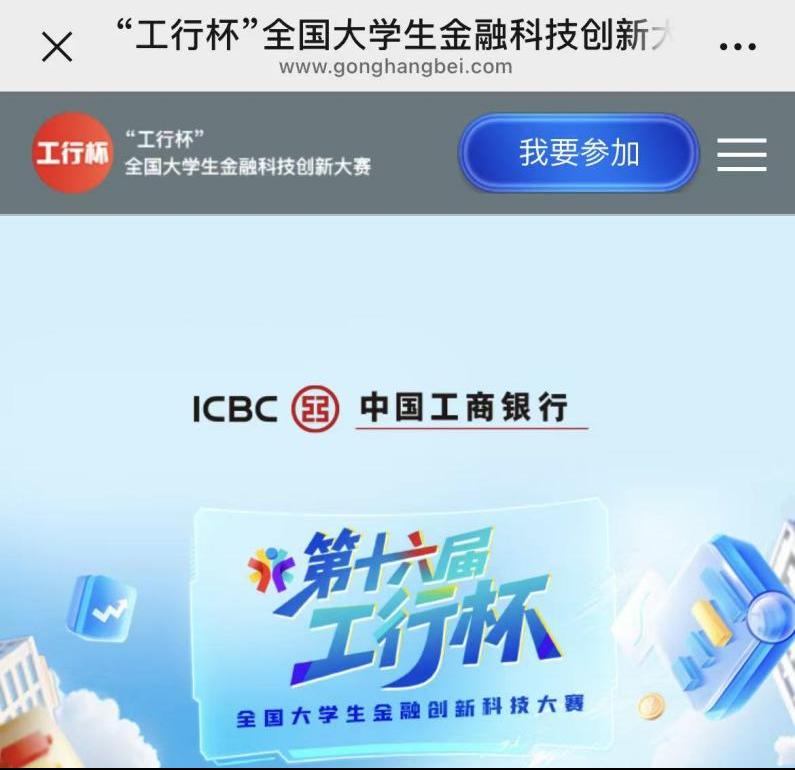 大赛官方微信公众账号“工行杯大学生金融科技创新大赛”顶部导航栏“我要报名”。