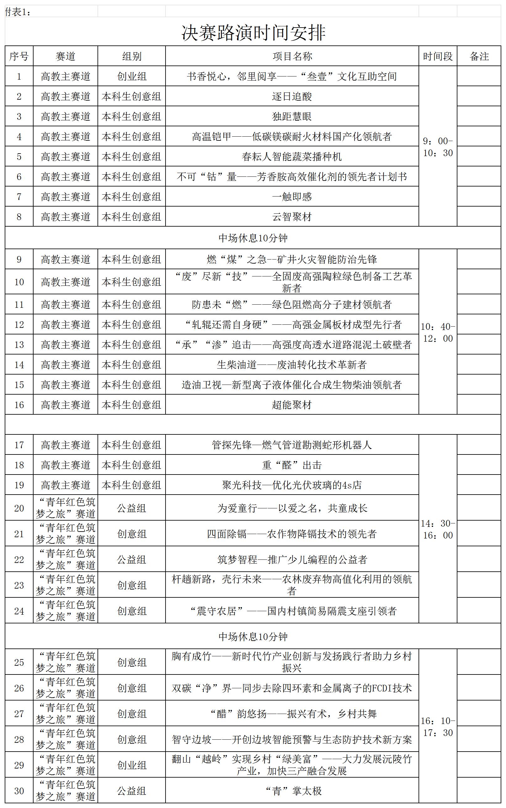 本次决赛路演时间具体安排如下: