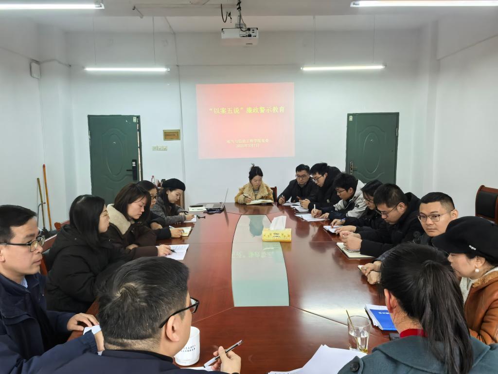 3月7日,电信学院召开“以案五说”廉政警示教育专题会议,学院领导班子、三办主任、教研室及实验室主任、党支部书记、全体辅导员等参会。