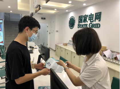 2020年8月12日下午,实践队员在国家电网天津城东供电分公司的营业厅内,向有关工作人员学习了很多有关安全用电的知识,并申请领取了国家电网下发的安全用电须知宣传册。由于大雨的缘故,实践队员此行只能在营业厅内部进行安全用电常识的宣传。