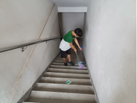 八月十一号早上六点半实践队员便到楼道进行清扫工作,因为经昨晚通过小区居民对近期社区的一些看法了解到物业在疫情期间有所松懈,楼道上的垃圾很多没有及时清理,于是队员们便决定对小区的居民们起到一个模范作用,因为疫情的传播与平时生活环境的干净与否是息息相关的,为疫情工作的顺利开展尽我们自己的一份绵薄之力。