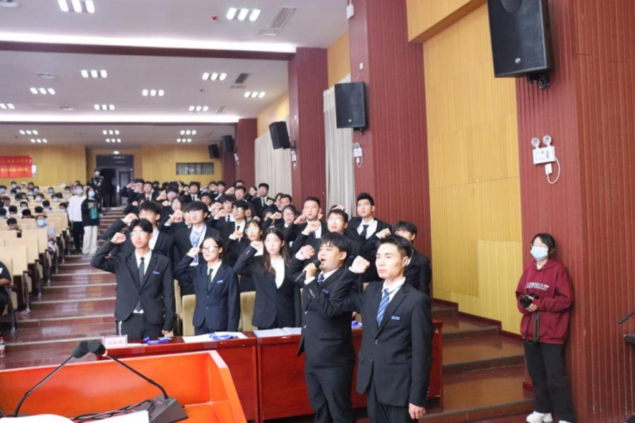 第十五届团委学生会团委副书记唐袁袁做就职演讲,对我院未来一年的团学工作进行规划。她表示将坚持以服务学生群体为导向,加强学生干部队伍建设,推动团学工作再上新台阶。第十五届团委学生会轮值主席刘硕带领新一届团学干部宣誓,随后由新一届团学干部带来朗诵《红旗颂歌》。