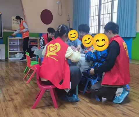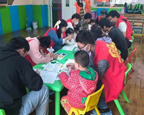 活动开始后,在康复中心老师的介绍和带领下,志愿者们来到各自的负责班级。在温暖如春的教室里,志愿者与小朋友们一起互动。有的陪孩子们做一些简单的游戏,如老鹰抓小鸡、丢手绢等,并协助进行康复训练;有的进行绘本活动,和孩子一起画画、唱歌、讲故事;有的对孩子的康复与教育等方面耐心进行辅导,细心、耐心地为小朋友们解答疑惑,帮助他们完成学习任务。在整个过程中,志愿者与小朋友们逐渐地熟悉起来,大家共同度过了一个既开心又富有意义的上午。
