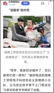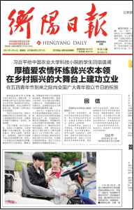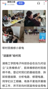 4月28日,电气与信息工程学院电子科技协会部分会员赴衡阳县台源镇台九村参加学校“五四青年节,我们在农村”主题团日活动,为村民检查农机,义务维修家电,受到当地好评,湖南日报、衡阳日报、红网等媒体予以了报道。