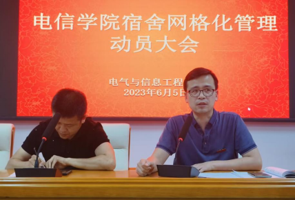 为进一步加强学生宿舍管理,落实网格化管理制度,电气与信息工程学院于6月5日晚在3312召开宿舍网格化管理动员大会。电信学院党委副书记刘海波、学工办主任兼分团委书记阳柯以及学生干部、学生党员参加。