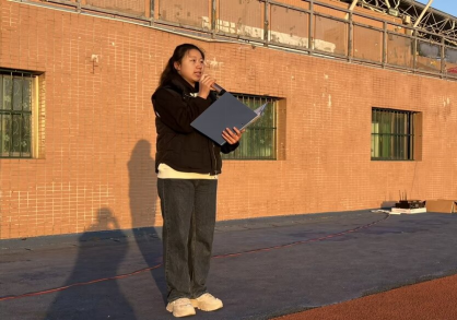 喻霞发表国旗下的讲话。她强调:新时代的青年应该有理想,敢于担当;能吃苦,肯奋斗。我们只有争做新时代的优秀青年,才能为祖国的繁荣强盛添砖加瓦。作为新时代的青年,我们应该紧跟时代步伐,不断提升自己的综合素质,勇于创新,敢于挑战,为实现中华民族伟大复兴的中国梦贡献自己的力量。