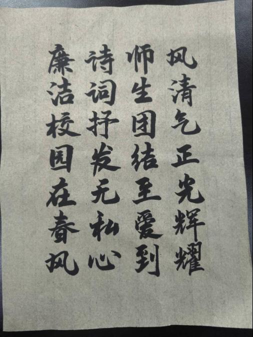 此次廉洁书法活动,切实做到以俭教人、以廉育人,涵养了学生的浩然之气,形成了崇廉尚俭的良好氛围,将书法艺术与廉洁文化有机结合,弘扬清廉文化,树立清风正气。让广大同学成为清廉之风的传播者,树立崇洁尚廉的价值观念,增强廉洁意识,引导同学们树立勤俭、廉洁、文明的思想观念。(电气与信息工程学院文/游威伦 图/姚学锦 审稿人/一审:舒畅 二审:阳柯 三审:俞斌)