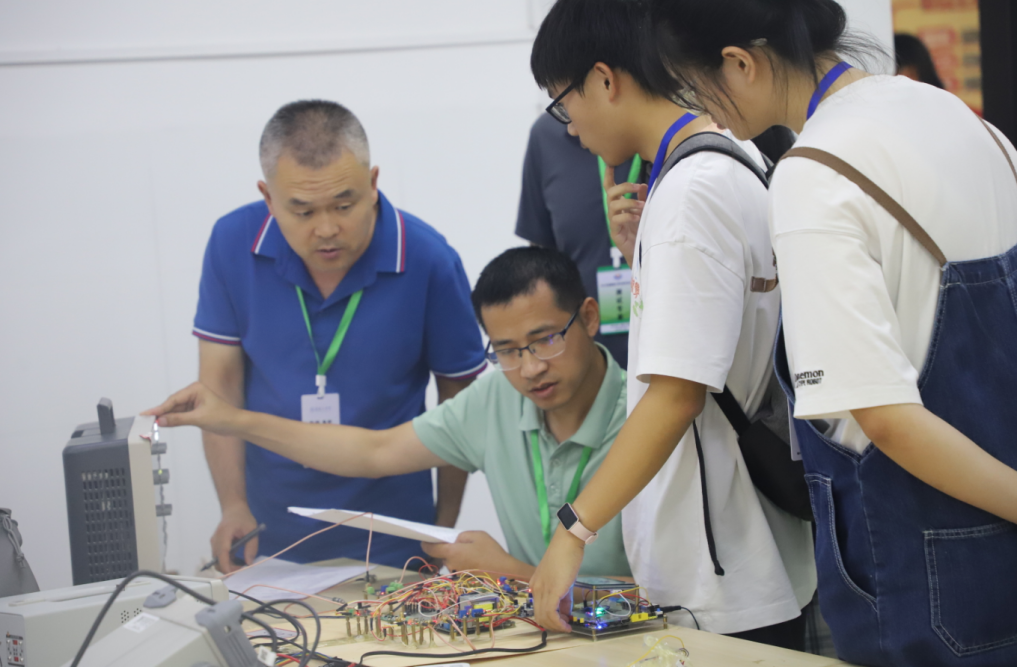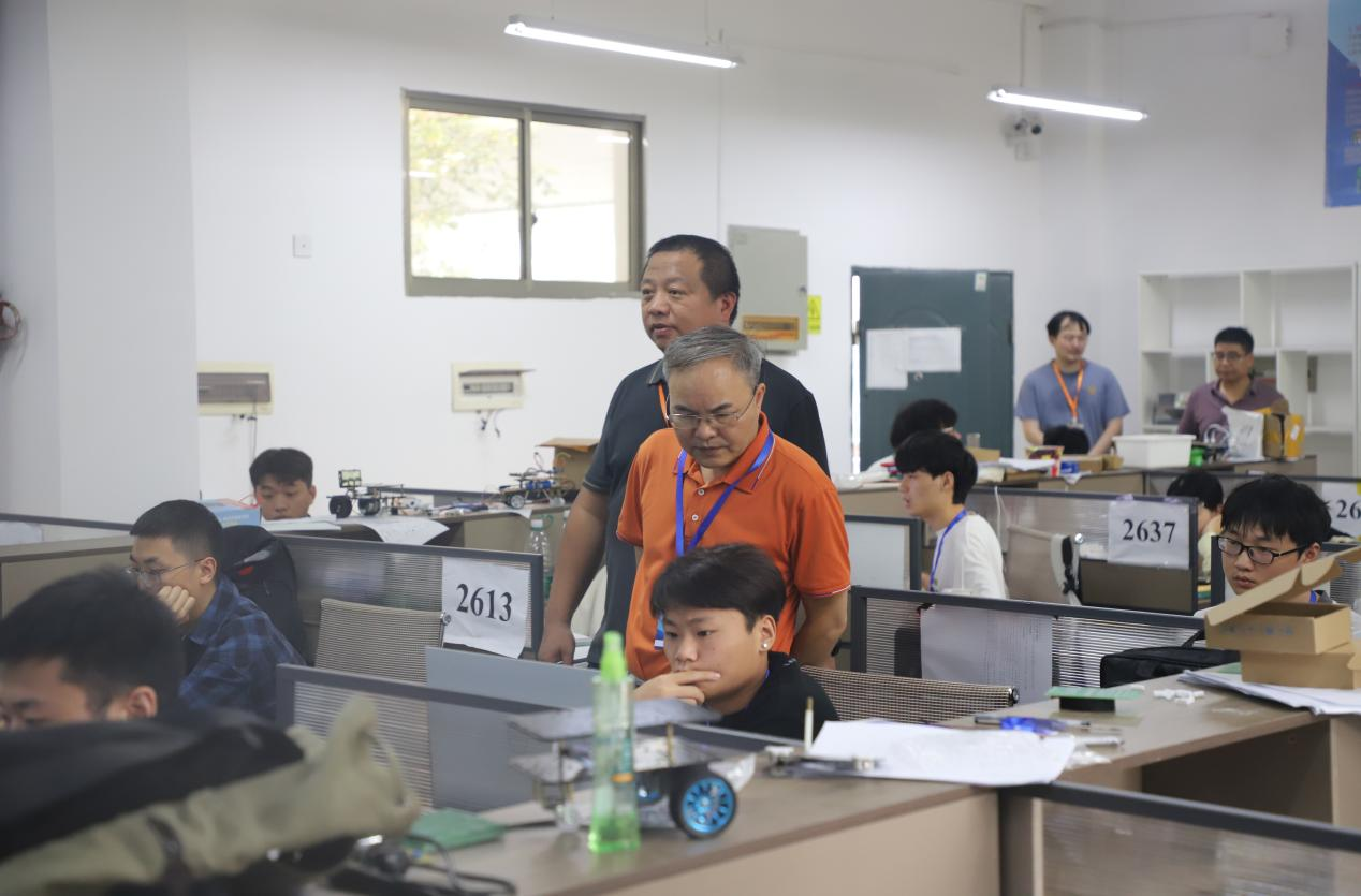 7月29日至8月1日进行为期四天三夜的作品制作,竞赛设立AC-AC变换电路并联运行(A题)、单相功率分析仪(B题)、无线传输信号模拟系统(C题)、立体货架盘点无人机系统(D题)、三子棋游戏装置(E题)、磁悬浮实验装置(F题)、简易录音屏蔽系统(G题)、自动行驶小车(H题)八个赛题,参赛队伍自主选择赛题并在规定时间内完成理论分析设计及实物制作以及撰写相应的设计报告。校党委副书记何建雄莅临竞赛现场,对赛事的筹备与进行情况进行了全面而细致的检查与指导。