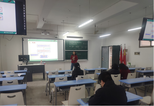 龙卓珉老师主讲了《电路分析》公开课,分别从课程定位、课程目标、课程内容及教材、课程学习方法及考核方式等方面进行了说课,并以“4.1叠加定理”内容进行了授课展示。龙老师以学生为中心,采用“问题引入→理论推导→得出结论→应用实例”环环相扣、层层推进方式设计课堂,启发式、探究式、实例说明等多种教学方式,讲授逻辑清晰,重、难点突出。课后,教师们对课程提出了持续改进的建设性意见,今后可在PPT课件制作的艺术性上进一步改进,适当增加课程思政元素,提升教育教学质量。