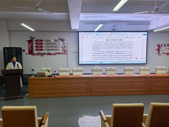 3月11日,在3312会议室,党委书记喻霞为全体教师党员讲授专题党课,深入学习2024年全国教育大会、2025年全国教育工作会议、全省教育大会、全省教育工作会议的主要精神。