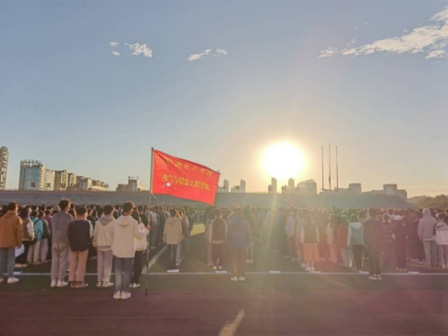 10月10日上午,电信学院在北运动场举行“喜迎二十大 礼赞新征程”主题升旗仪式,全体辅导员及学生参加。6:50升旗仪式开始,校国旗护卫队以铿锵有力、整齐划一的步伐坚定着走向升旗台,大家面对国旗肃立,齐唱国歌,共同祝愿伟大的祖国繁荣昌盛。刘海波副书记号召同学们厚植爱国情怀,以实现中华民族伟大复兴为己任,不负韶华、以梦为马。并对全体师生提出三点希望:一要铭记初心,坚定理想信念;二要脚踏实地,努力拼搏奋斗;三要志存高远,自觉担当作为。努力成长为堪当民族复兴大任的终身学习者、问题解决者和责任担当者;四要弘扬新时代廉洁文化,反对特权思想、特权行为,在全社会倡导“以廉为荣、以贪为耻”的价值导向,为推进中国式现代化营造良好的发展环境。