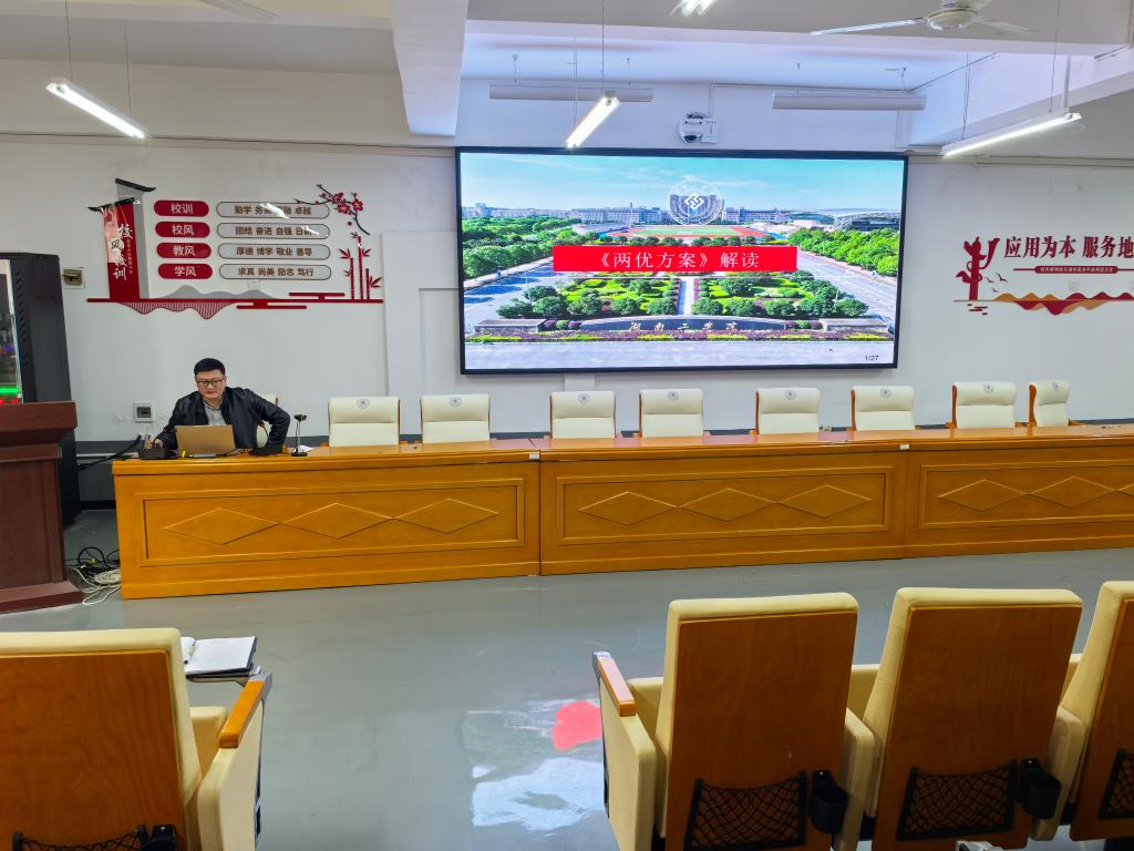 院长洪俊阐释了去年绩效分配方案,他指出学院要正视差距、坚持教学中心地位,聚焦产业,推进开放办学理念,从教学管理、学科竞赛破短板,加快学科建设,为学校申硕做出自己的努力。