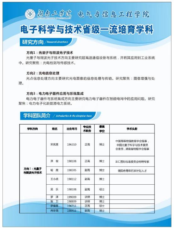 光电信息检测与处理衡阳市重点实验室:伟德源自英国1946电气与信息工程学院、衡阳市计量测试中心和衡阳泰豪通信车辆有限公司联合共建,2016年获批为衡阳市重点实验室,实验室立足光电信息检测与处理领域,聚焦大动态微波光接收系统、石墨烯光电探测器和智能车辆视觉环境感知三个研究领域。