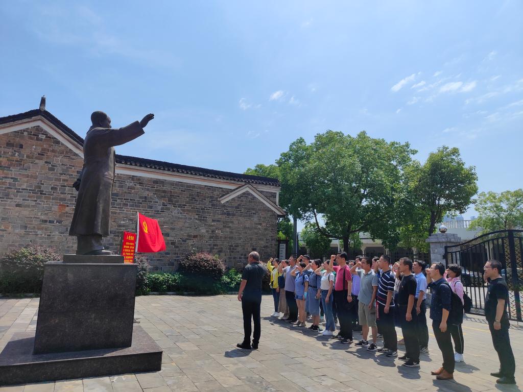 在衡山农民运动纪念馆前,全体党员在院长刘璟忠的带领下,面对党旗,庄严宣誓,重温入党誓词。