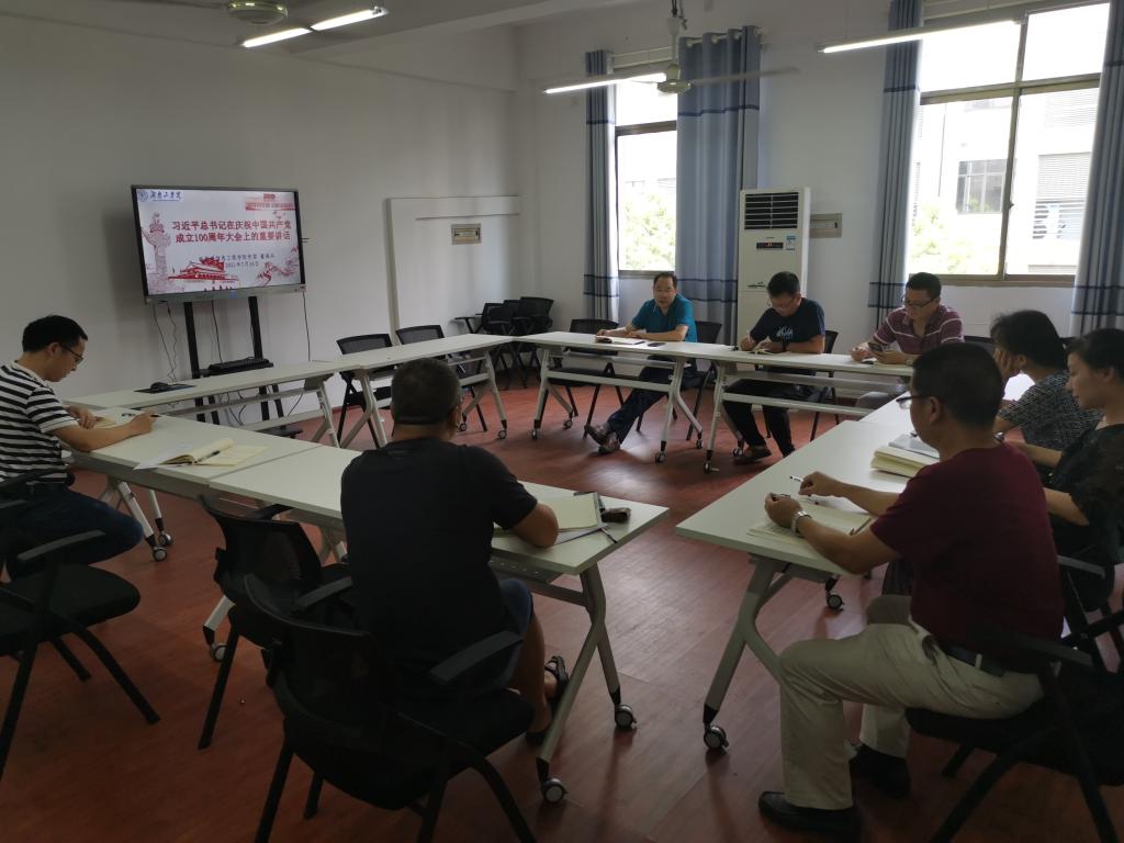 7月16日上午,电信学院党委理论学习中心组在3410会议室召开专题学习会,学习习近平总书记在庆祝中国共产党成立100周年大会上重要讲话精神。党委中心组全体成员参加会议,院党委书记范志明主持专题学习会并讲话。