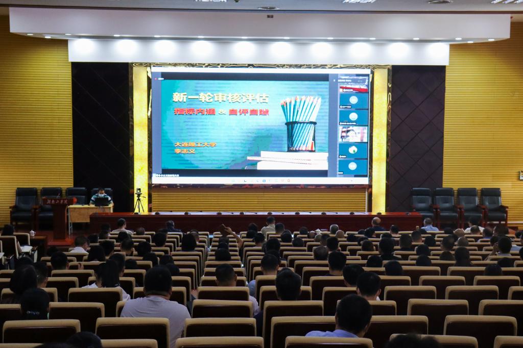 李志义结合自己作为高等教育教学评估中心核心专家的丰富经验,以《新一轮审核评估指标内涵与自评自建》为题,从高等教育质量保障与评估背景、新一轮审核评估的主要特点、新一轮审核评估的实施要点、新一轮审核评估指标内涵解读、新一轮审核评估学校自评自建等五个方面系统解读了新一轮审核评估工作。特别是针对评估指标内涵,李教授详细讲解了每个三级指标的背景、具体内容和审核要点。